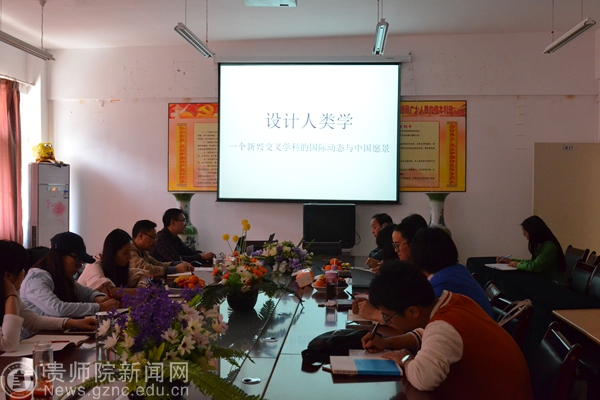 接着,龙宇晓从设计人类学的含义出发,分析了何为设计人类学,同时从设计科学的发展历程和贵州本土文化资源等方面分析了设计人类学对我院及我省发展的必然性和重要性。他特别强调,设计学和人类学的交叉发展成了世界学术地景中应用型研究的一大亮点和热点。介绍“设计人类学”这一新兴交叉学科领域的国际发展动态和在我国发展的愿景,并重点讨论人本主义设计理论、传统文化与设计、本土设计智慧发掘研究、设计话语权等设计人类学研究的热门话题。同时,还将针对贵州省情和本土设计文化资源优势,提出在贵州师范学院大力发展“设计人类学”并将其打造成全省乃至全国学术特色品牌的思路和初步行动方案。