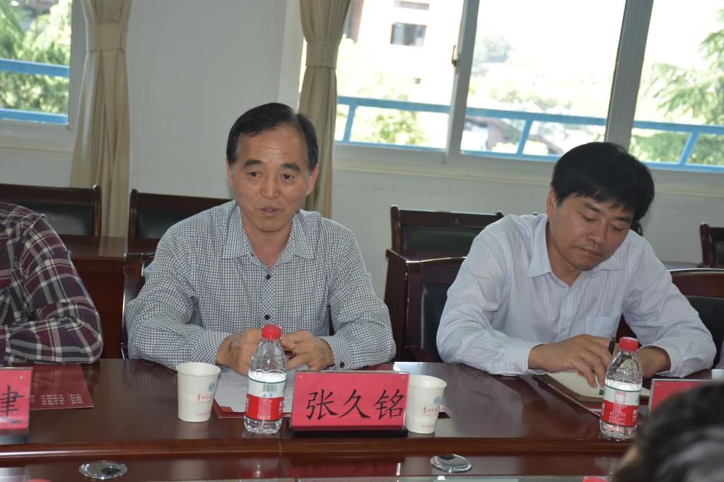 张久铭介绍了平顶山学院的基本情况,并表明了考察主要目的是交流科研与学科建设、招生就业和大学生创新创业等相关工作的开展经验。