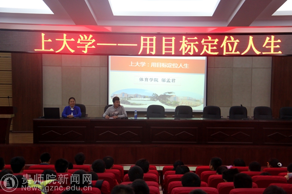 本网讯 3月31日,我校体育学院党委副书记邬孟君在“师院大讲堂”举行了主题为“上大学——用目标定位人生”的讲座,为体育学院学生讲述了大学中确定目标的重要性和方式方法。邬孟君用个人亲身经历给学生们分享了上大学的不易和上大学的意义,整个讲座过程中有笑有泪,学生们感同身受,用“听君一席话,胜读十年书”来表达讲座后的感受。