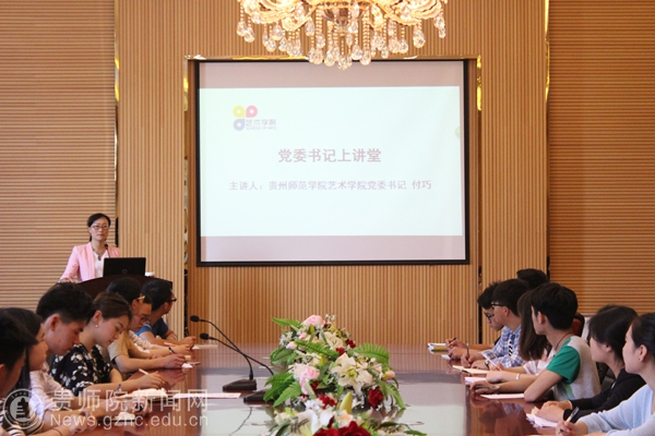本网讯 为加强书记与学生间的交流与互动,深入贯彻“两学一做”学习教育,弘扬社会主义核心价值观。5月5日中午,艺术学院党委书记付巧组织学院全体学生党员、团学干部、各班班干在6楼会议室展开了一场题为“小确幸”与“大格局”的交流讲座。