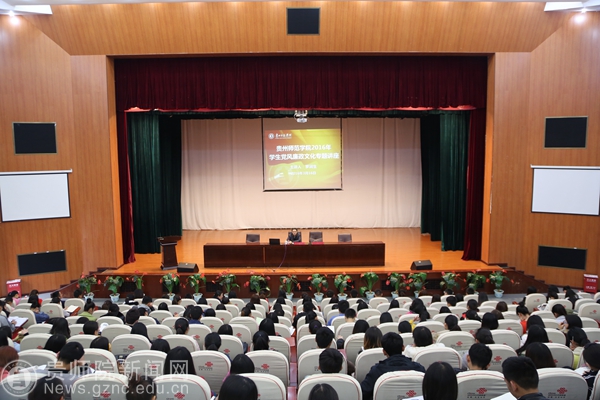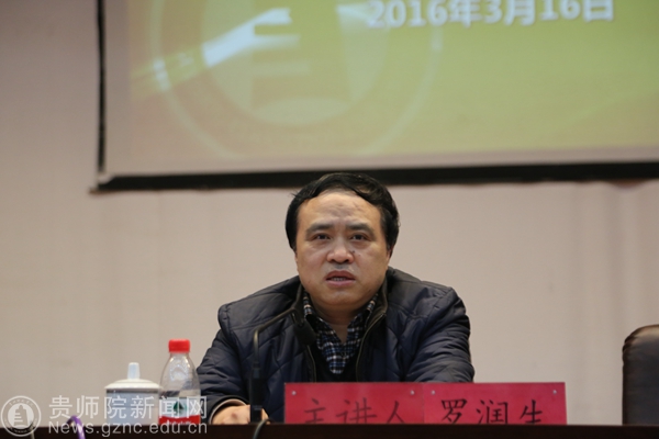 为深入贯彻十八届中央纪委六次全会和十一届省纪委五次全会精神,进一步加强我校2016年党风廉政建设和反腐败工作,提高高校学生党风廉洁意识,3月16日,贵州省监察厅派驻贵州省教育厅监察室正厅级监察专员罗润生在我校逸夫楼演播厅开展了学生党风廉政文化专题讲座。全体专职辅导员,各学院学生代表(含学生干部、学生党员)参加了讲座,讲座由校纪委书记王之瑞主持。